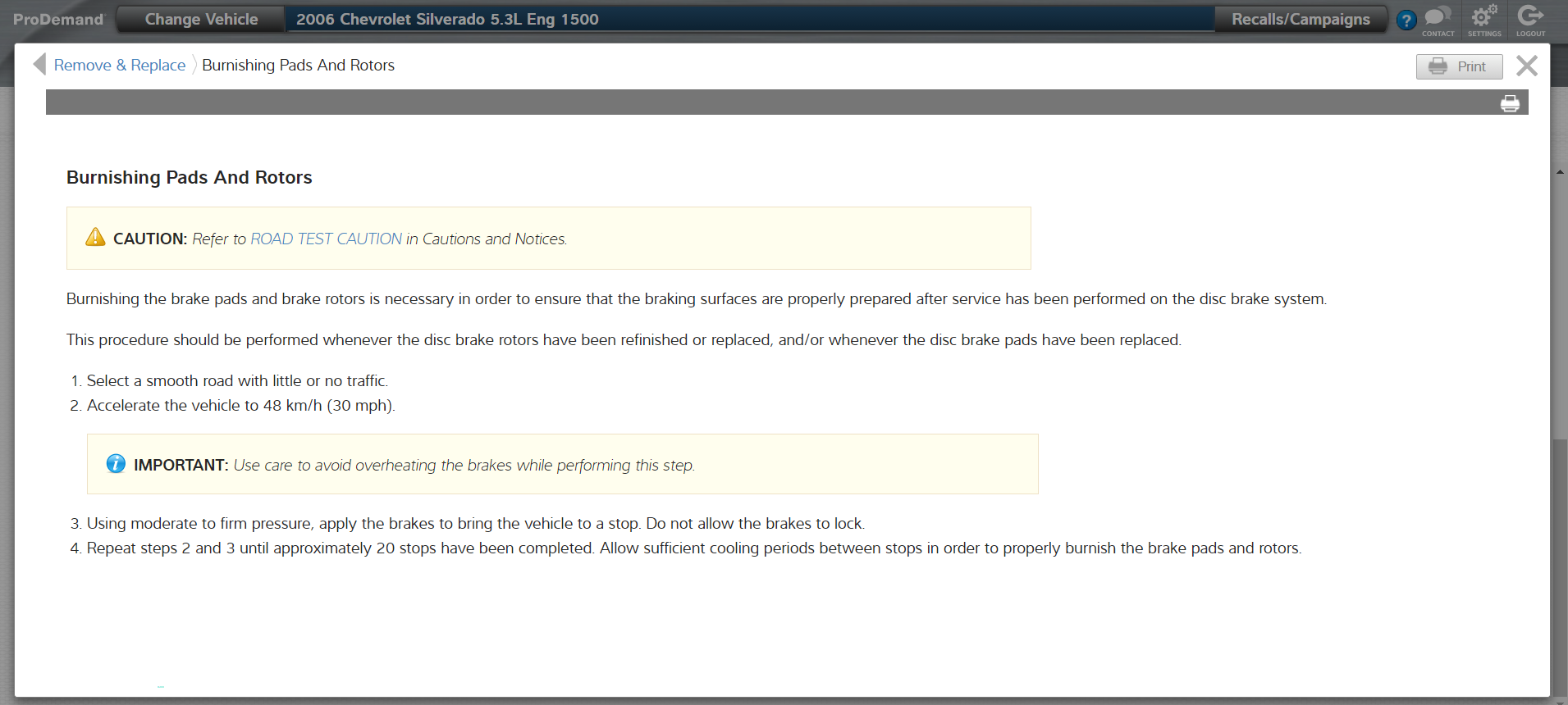 You’ll see brake burnishing procedures in ProDemand auto repair information software, including the labor times when writing an estimate.