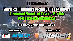 Mitchell 1 will sponsor a free webinar on Saturday, Feb. 25, at 6 p.m. EST titled, “Electrical Troubleshooting by the Numbers – Advanced Electrical Testing for the Professional Technician.”
