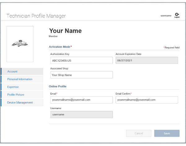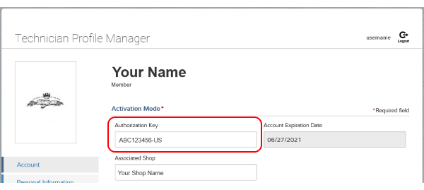 Current Accounts – If your account is current, log into the community through ProDemand, ShopKey Pro or SUN Collision and then click your community name near the top right of the product and then click on Profile Manager. Log in with your Technician credentials and then enter the Authorization Key in the box provided. Review and update the rest of your profile and make sure all required fields are filled out. And then click the “Save” button. Exit the Profile Manager by clicking your username at the top right and then clicking on Logout. You can log back into the Profile Manager to confirm that your expiration date has been updated.