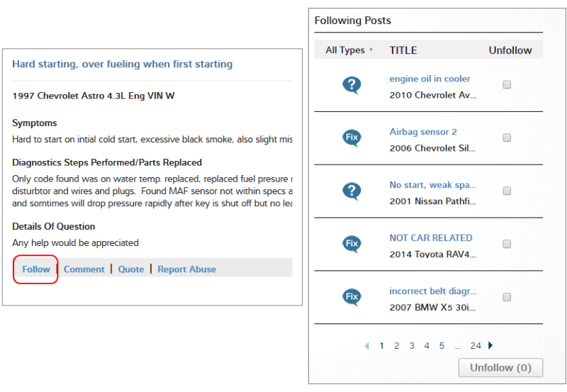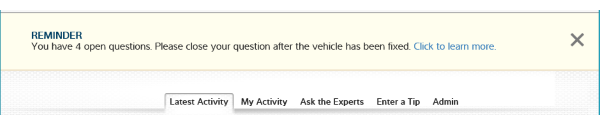 There may be times that you do not fix the vehicle that you asked a question about. It could be that the solution could not be found, or that the customer declined the repairs, or took the vehicle back and may bring it back another day. If you’re not going to be getting the vehicle back to work on, you should go ahead and close the question. Just reply to the question yourself with the details of why it wasn’t fixed and then select that as the best answer when closing. If the vehicle might come back for further work on the issue, just leave the question open. Then reply to it when the vehicle comes back to bring it back to the top of the Latest Activity list. You can always find the list of your questions in the My Activity page.