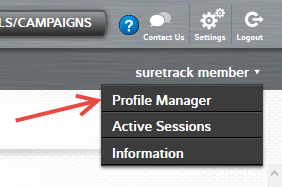 To update your SureTrack Community user profile. Click your username near the top right of the program screen and then click on the Profile Manager link. You will need to enter your username and password to get to get to the User Profile page. Make any changes needed and be sure to fill out all required fields marked with an “*”. You may be presented with security questions when you log into the Profile Manager for the first time.
