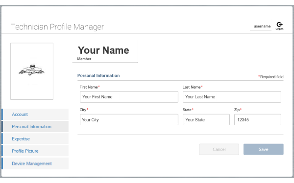 - Once you create the basic account information for your technician, they can log into the SureTrack Community and start participating. They should log into their profile manager and complete their profile and also set up their account security questions as shown in step 5 in the previous section.