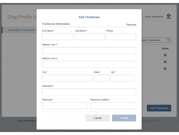 NOTE: If you are a shop manager and want to set up accounts for your technicians, you can use this alternative method.
