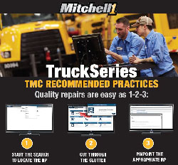 Mitchell 1, in partnership with the ATA’s Technology & Maintenance Council (TMC), has merged TMC Recommended Practices (RP) into its web-based TruckSeries diagnostic and repair program to enable users to quickly access the valuable information when servicing commercial vehicles.