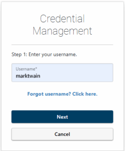 Step 2: Enter Your Username. Input the username associated with your account and click “Submit.” If you do not know it, select “Forgot username? Click here”.
