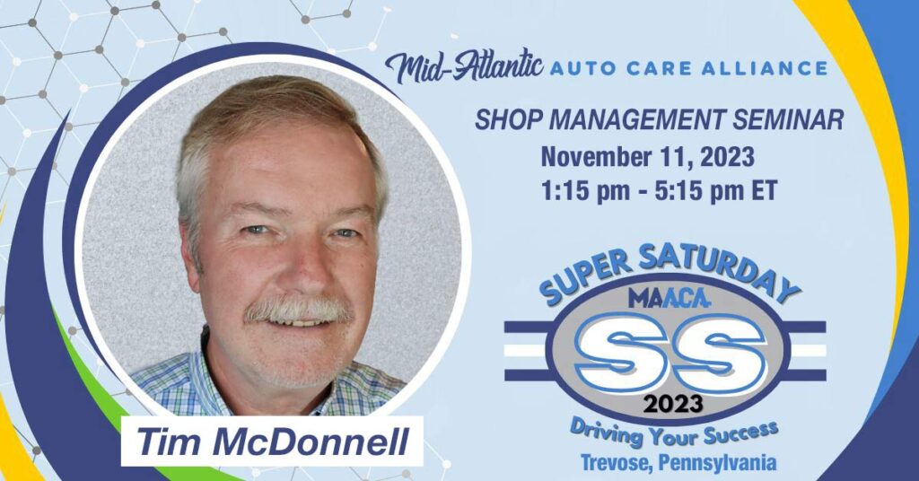 SAN DIEGO, Calif. – Oct. 23, 2023 – Mitchell 1 announces that Tim McDonnell, senior product marketing manager, will host a shop management seminar during the Mid-Atlantic Auto Care Alliance’s (MAACA) Super Saturday Training Expo and Trade Show. The session, titled “Glean More out of Your Manager SE and ShopKey Shop Management System,” is scheduled for Nov. 11 from 1:15-5:15 p.m. ET at the Radisson Hotel Philadelphia Northeast in Trevose, Pennsylvania.