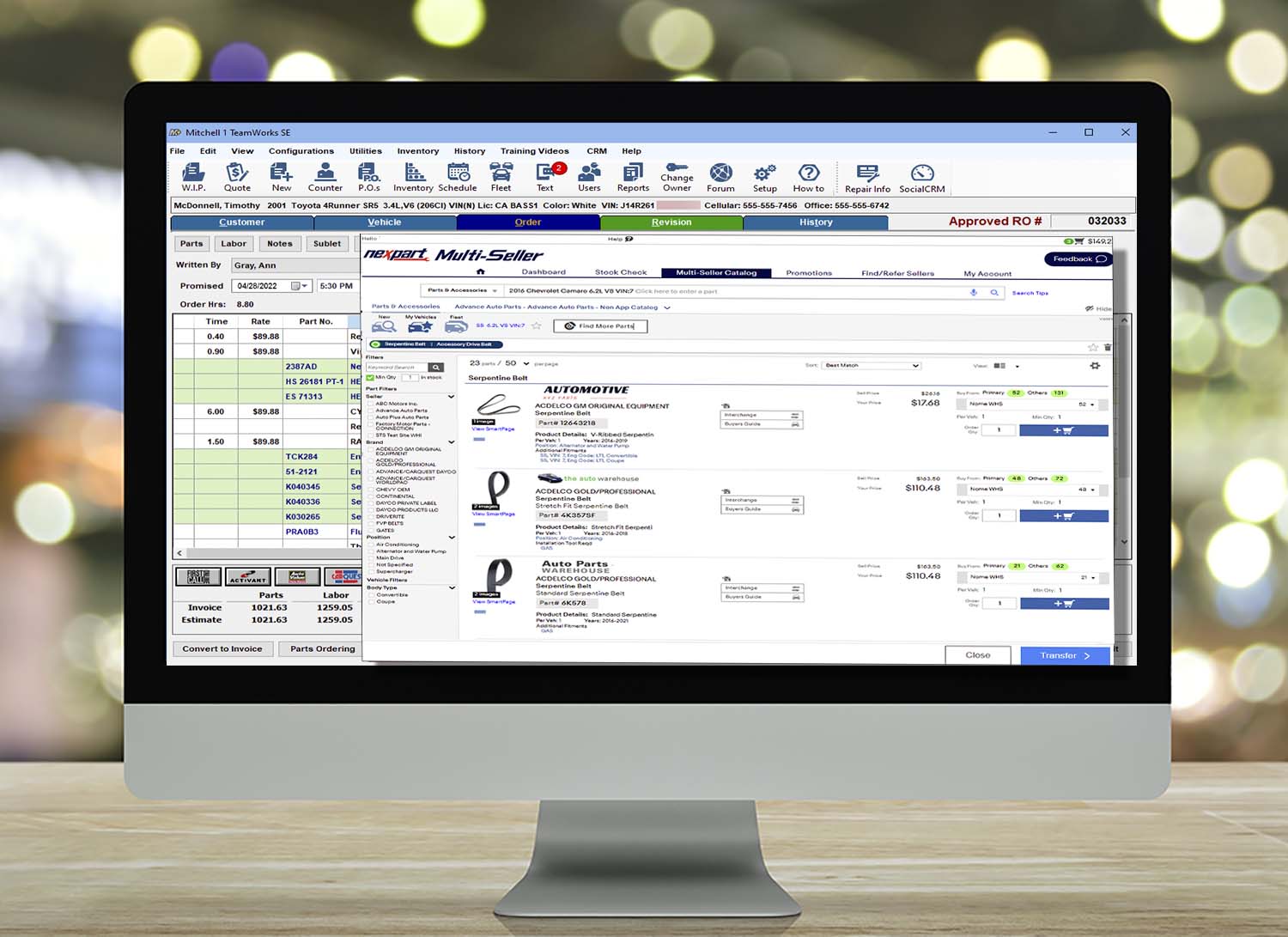 The Nexpart Multi-Seller catalog connects shops to over 40,000 seller locations, including most of the buying groups and national chains such as Autozone, NAPA, and Advance Auto Parts (including Carquest and WorldPac). It is virtually available 24/7, allowing shops to order parts at their convenience. With one look-up, shops can find parts vendors in their area, view real-time inventory and availability, immediately place the order, transfer the parts and estimated labor charges through Manager SE, and instantly build estimates.