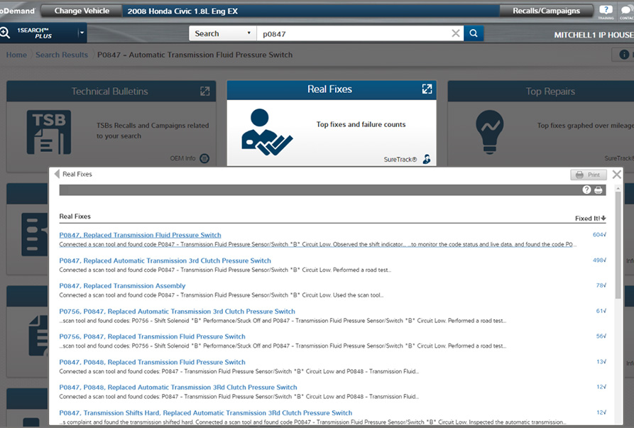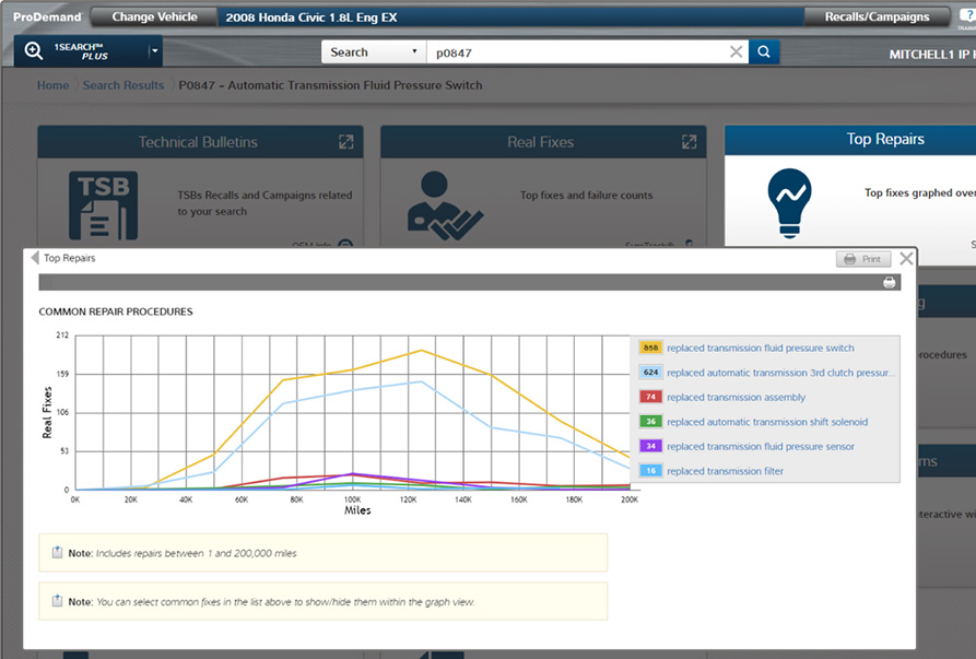 See which procedures are most frequently performed to successfully complete the repair. Quickly determine the most likely fix based on a vehicle-specific model, mileage, codes, components and symptom.