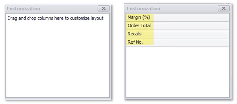 Next, we have the new Columns button along the bottom of the WIP screen. This will open a box where users can drag columns they don’t use and wish to remove from their WIP screen display. If you wish to restore any of those removed columns, click on the Columns button again and drag the desired column(s) out of the Customization box.