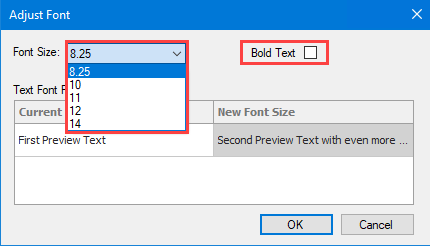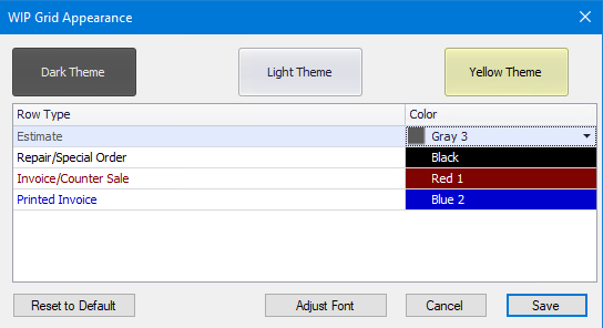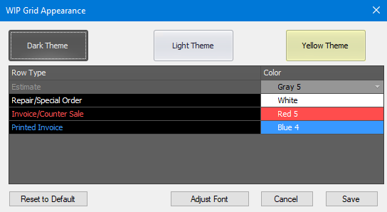 The WIP Grid Appearance window also includes a new ADJUST FONT option to access settings to control text size. Users may select from 8.5 to 14 font size. We have also included a Bold Text option as well. NOTE: It may be necessary to experiment with your font size settings to confirm your text still fits within fields on Manager SE screens.