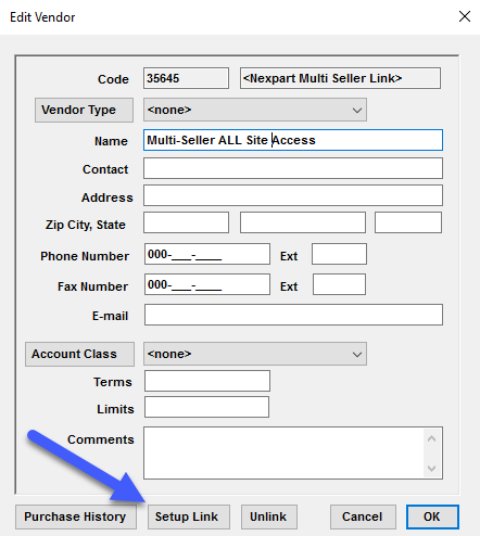 4- Enter in the Vendor’s information and select Setup Link at the bottom of the screen.