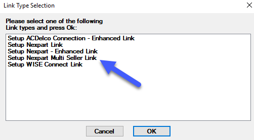 5- In the Link Type Selection screen select the Setup Nexpart Multi-Seller Catalog and click on OK at the bottom of the screen.