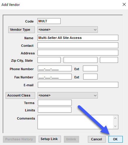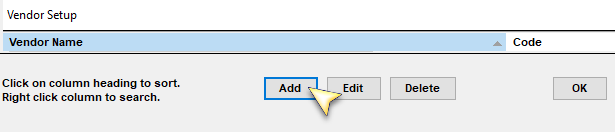 7- Close the Add Vendor screen by selecting Add at the bottom of the screen and close out of vendor setup.
