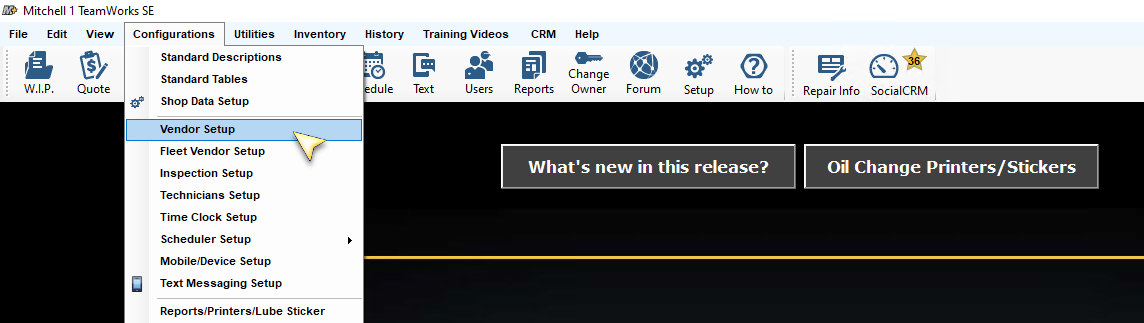 2- Next, within Manager SE, go to the Configurations tab at the top of the screen and select Vendor Setup.