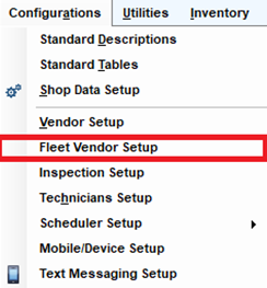 NOTE: The fleet vendor would first be defined and saved (as shown in a sample screen above).