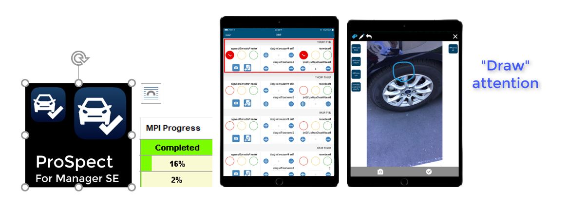 ProSpect is our multi-point digital inspection app running on (Android or iOS) mobile devices, communicating with the Manager SE database using the shop’s wi-fi. The primary mission is to be at the vehicle and perform inspections that can support the technician’s findings and justify repair expenses.