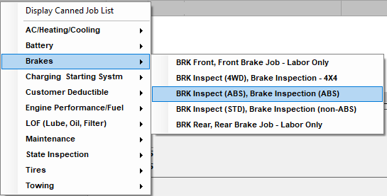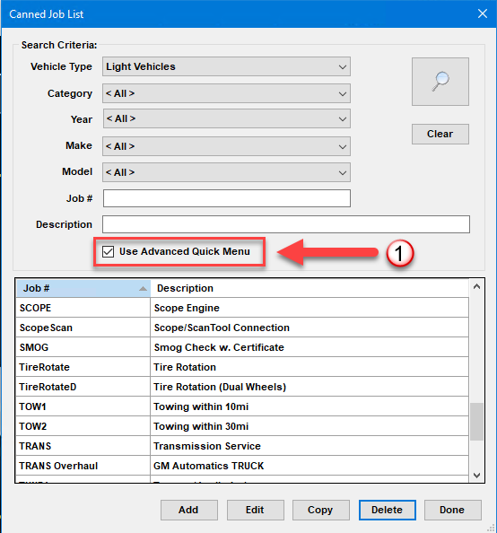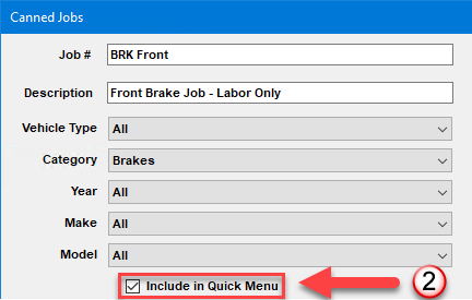 - If a repair shop specializes in certain vehicles –or certain types of work have dozens or possibly hundreds of specific canned jobs built – how would they control which ones get listed in Quick Menu?