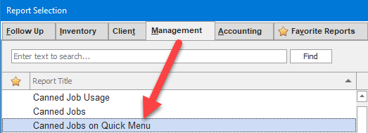 TIP: Canned Jobs on Quick Menu report (Management) to conform which jobs are already selected.