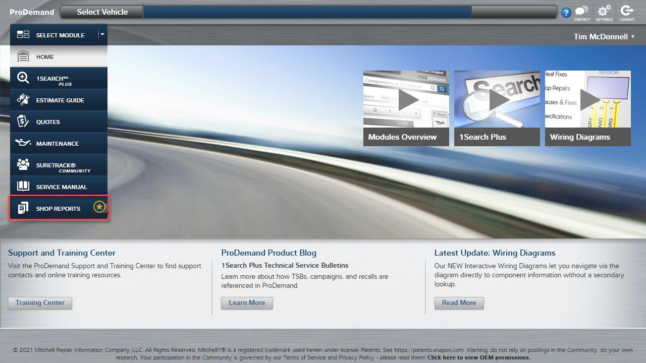 NOTE: If you do not see a Shop Reports module on your home screen, it means that this feature has not yet been added to your account. If you prefer not to wait for your account to be updated for this, please contact our technical support team to enable Shop Reports for you now.