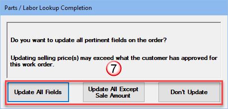 - Click the appropriate catalog button to select non-stocked items. Transfer the part(s) back to Order screen.