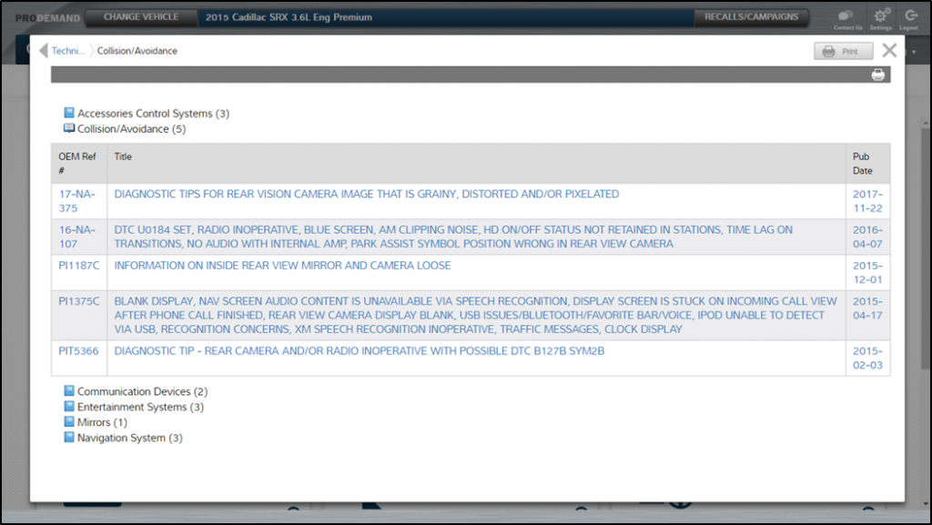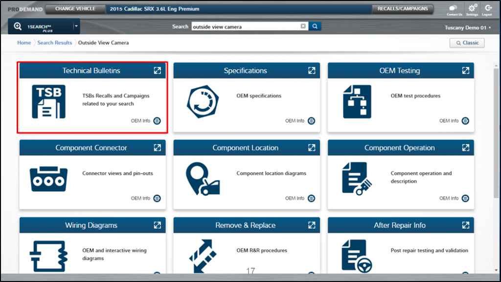 Step 4: Go back to your1Search Plus card-format menu and navigate to “Technical Bulletins.” This is going to be an important area for you to visit because as these new technologies continue to develop there will be continuous improvements in the factory, increasing the releases of important TSBs.