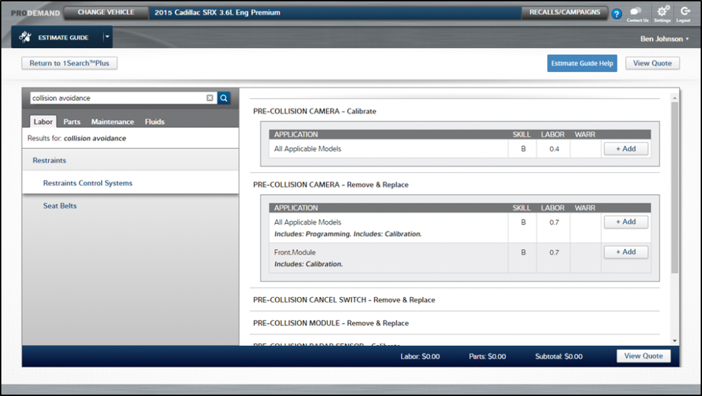 NOTE: You can even find ADAS components in our estimating guide.