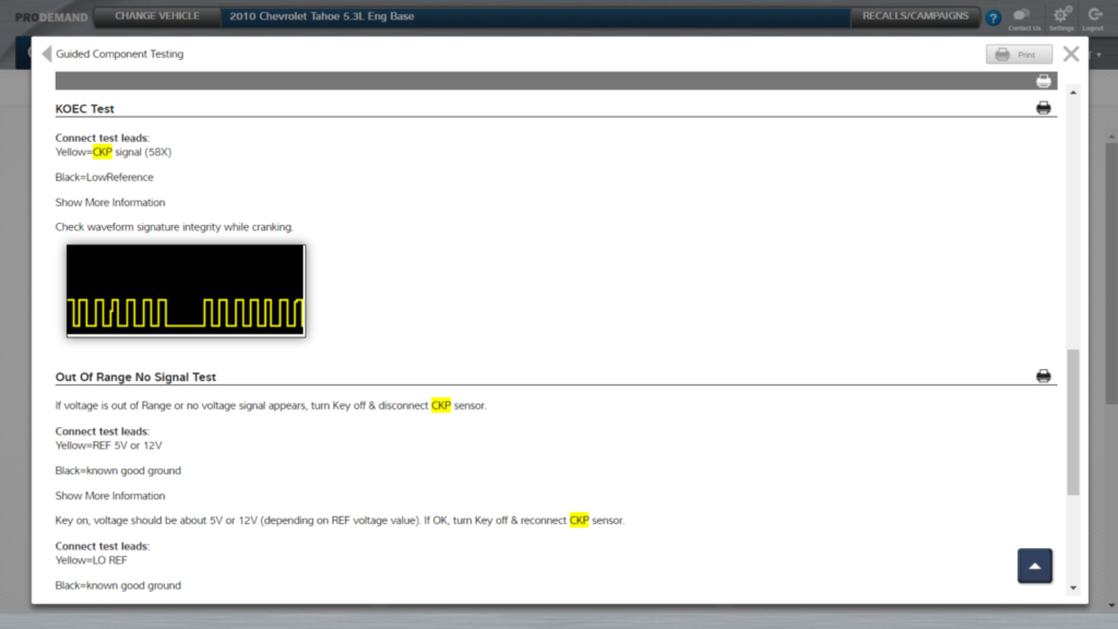 Once you select the Guided Component Testing card, you have everything you need — operation, location and connector are right there! Specific tests and known good waveforms are available as well (Figure 10).
