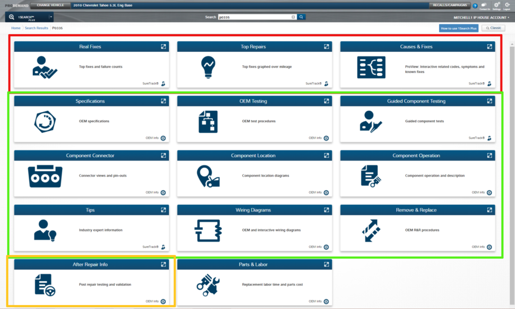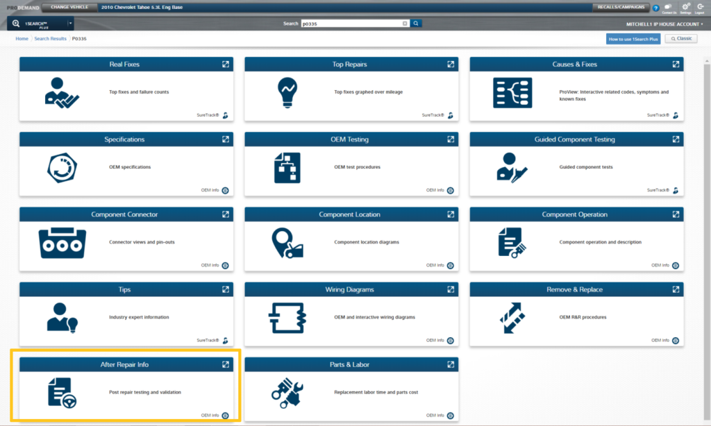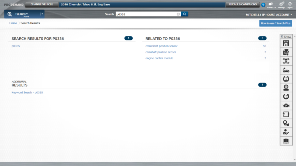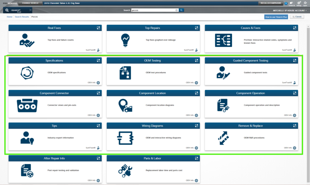 This can be time consuming; however, that is why ProDemand with the 1Search Plus advanced search engine has been designed with sophisticated searching algorithms to take your search term, find the most relevant information and present it in a single lookup that is formatted with a logical diagnostic approach.