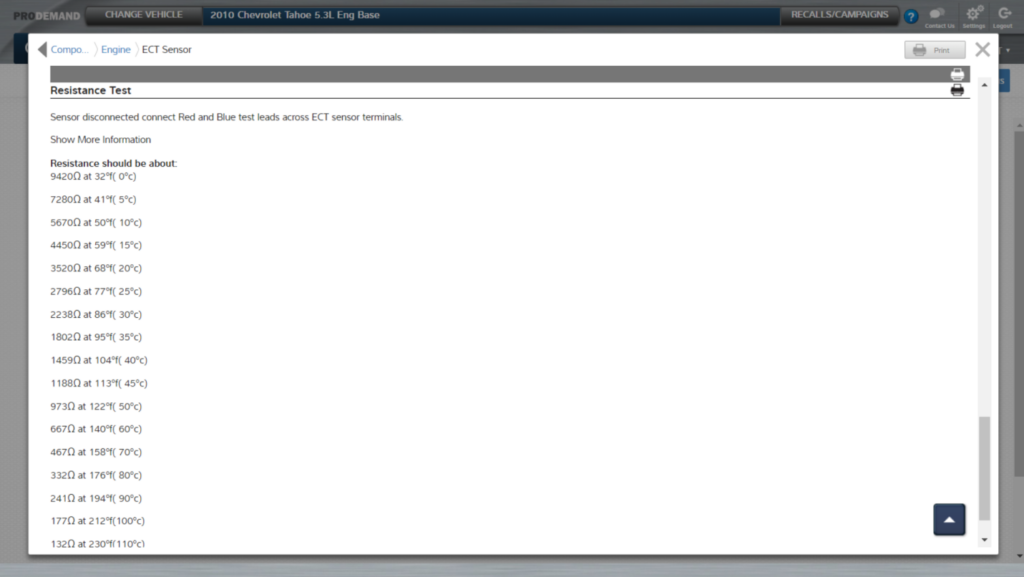 If this is a problem you have experienced before, you may only need to refer to your component testing information, such as the Component Tests QuickLink in ProDemand (Figure 1). For example, let’s look at a Chevy Tahoe with a temperature gauge that doesn’t work. You suspect the Coolant Temp Sensor.