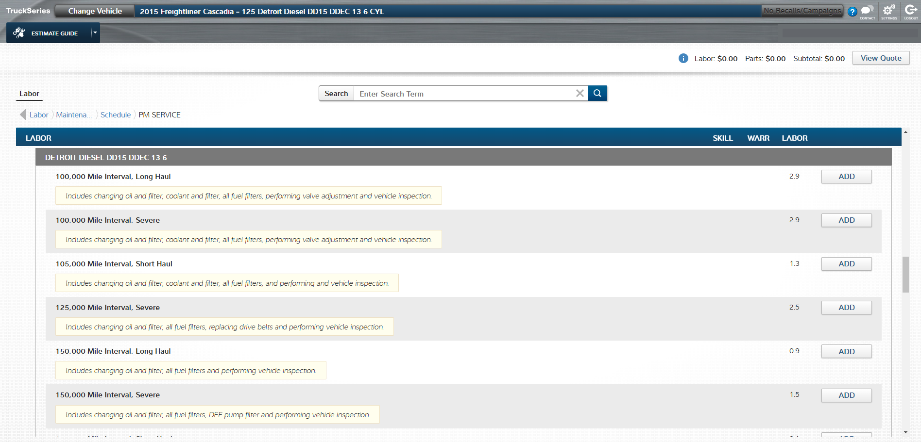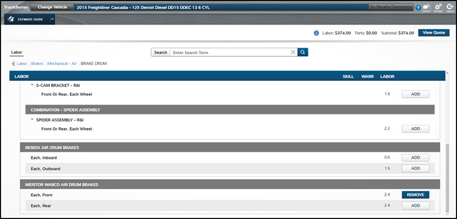 TruckSeries Estimator is also a valuable tool for shops and maintenance managers, as it allows them to schedule work, increase the shop’s throughput, monitor technician performances, and provide accurate repair cost estimates. Plus, it lets transportation managers know how long their trucks will be out of service.