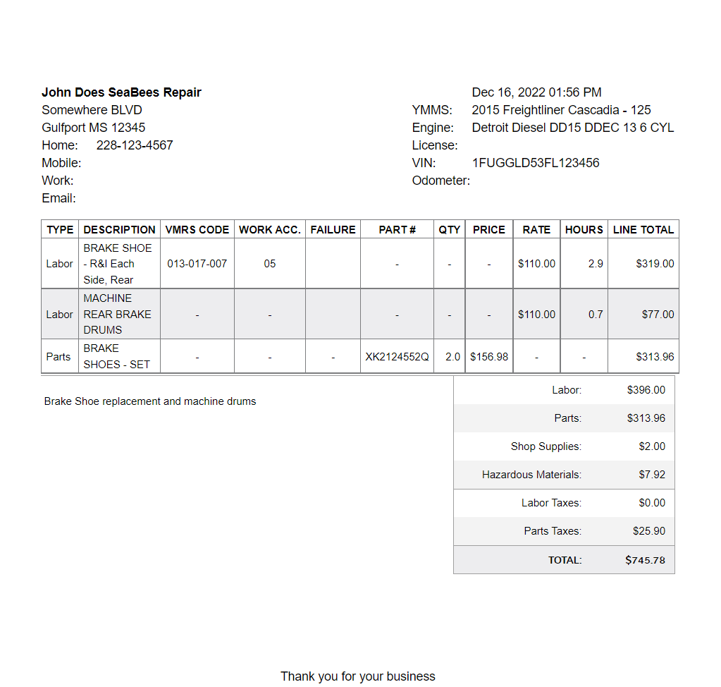 3- Creating estimates for customers by listing repairs, parts and related VMRS codes, and also informing managers of the projected downtime.