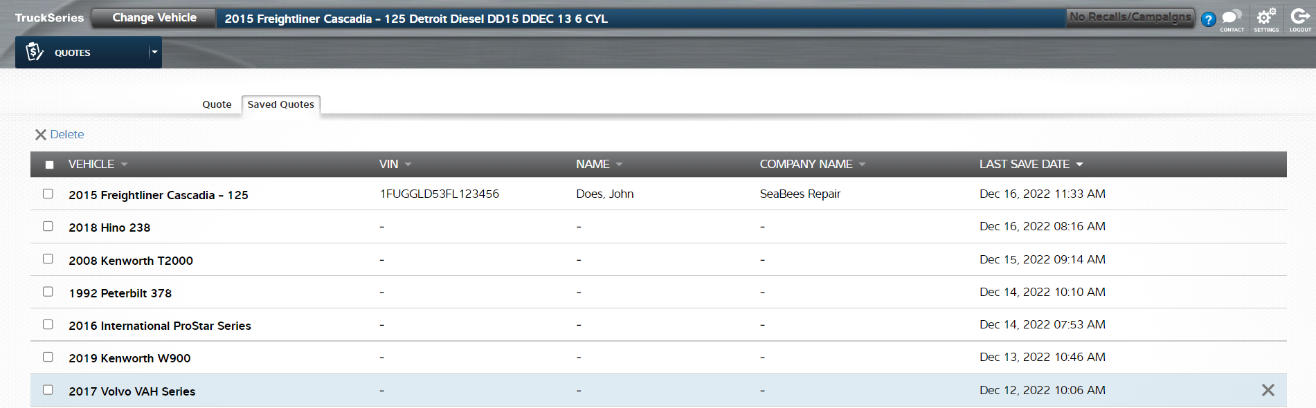 4- Saving quotes for future reference. This is a wonderful feature that saves time by eliminating the need to create new estimates. Just open up a saved quote for a Year, Make and Model truck and then modify as needed.