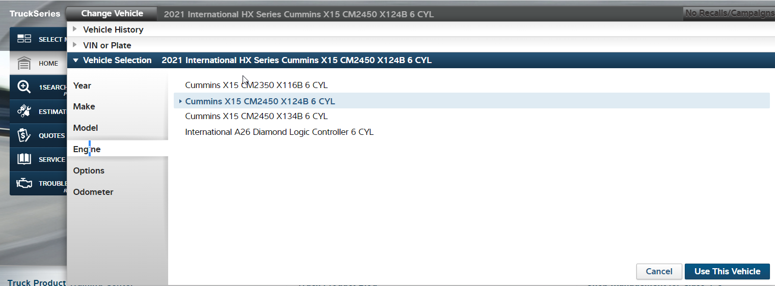 1- First, we need to select the Year, Make, and Model of the truck along with the engine from the drop-down selector.
