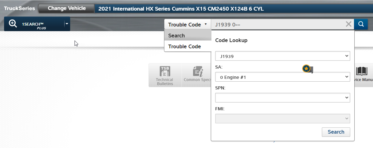 2- Next, select “Trouble Code” in the 1Search Plus search box.