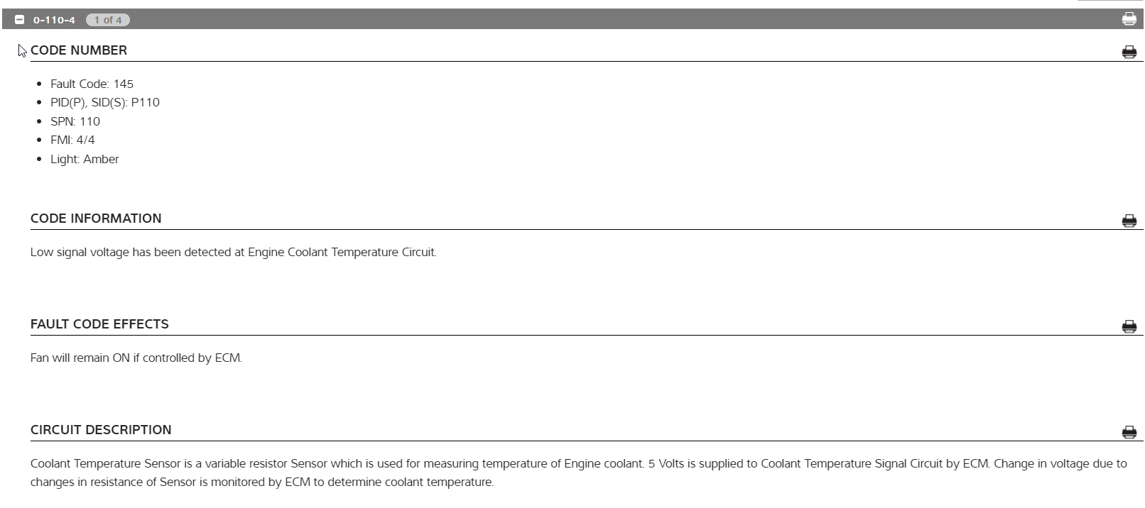 Let’s take a look at an example from an engine fault code from a 2021 International HX equipped with the Cummins X15 and a J1939 code 0-110-4.