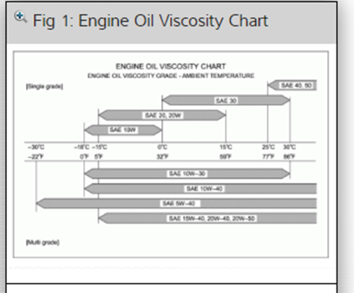 Engine oil viscosity charts provide OEM recommendations for oil usage based on temperature operating conditions for both single and multi-grade oils. This helps ensure correct viscosity is used as well as maintaining any OEM warranty requirements. Using the wrong viscosity oil or incorrect fluid application may cause severe engine or component damage.
