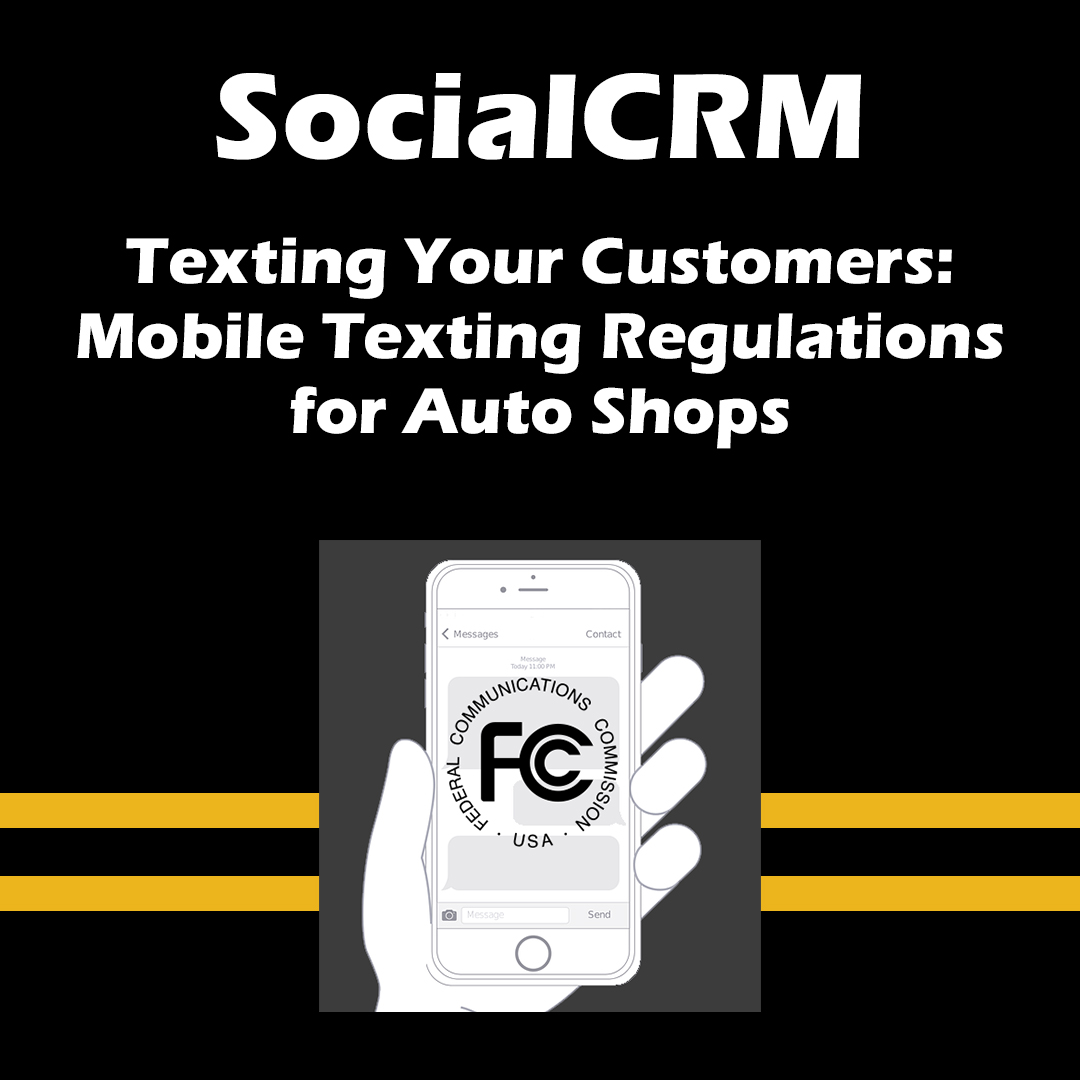 The FCC considers a marketing text any message that offer goods or services or “may induce a recipient to purchase goods or services.” The problem for your auto repair shop is that any “How are you doing?” informational type text could easily turn into a marketing text, putting your shop at possible risk. So just because your text starts off without an offer for goods and service, once it turns into an offer it becomes a marketing text and subjects your business to fines between $500 and $1,500 per illegal solicitation.