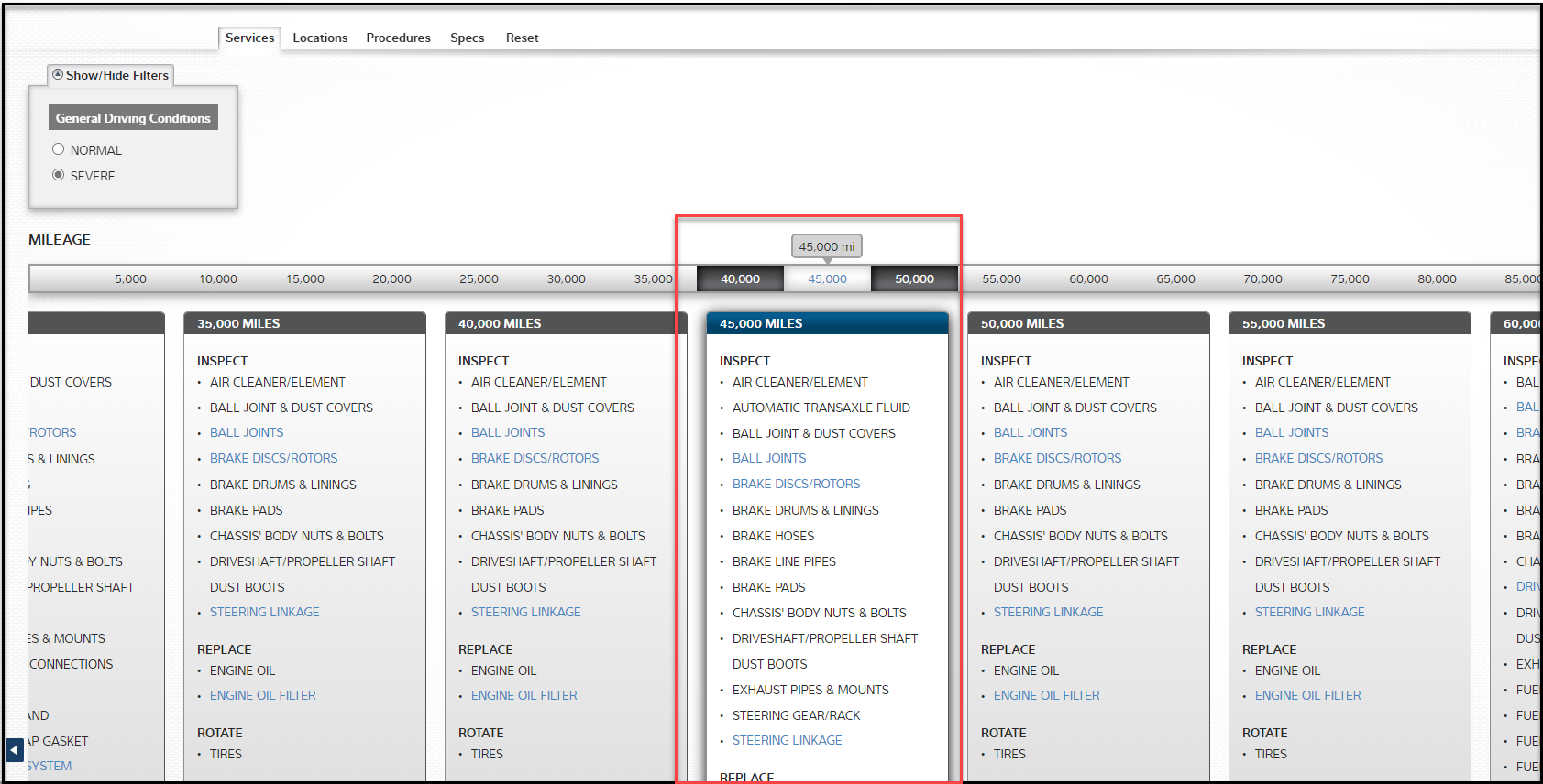 Need to check the maintenance schedule for the mileage you have entered. We will automatically take you to the closest mileage from what you entered.